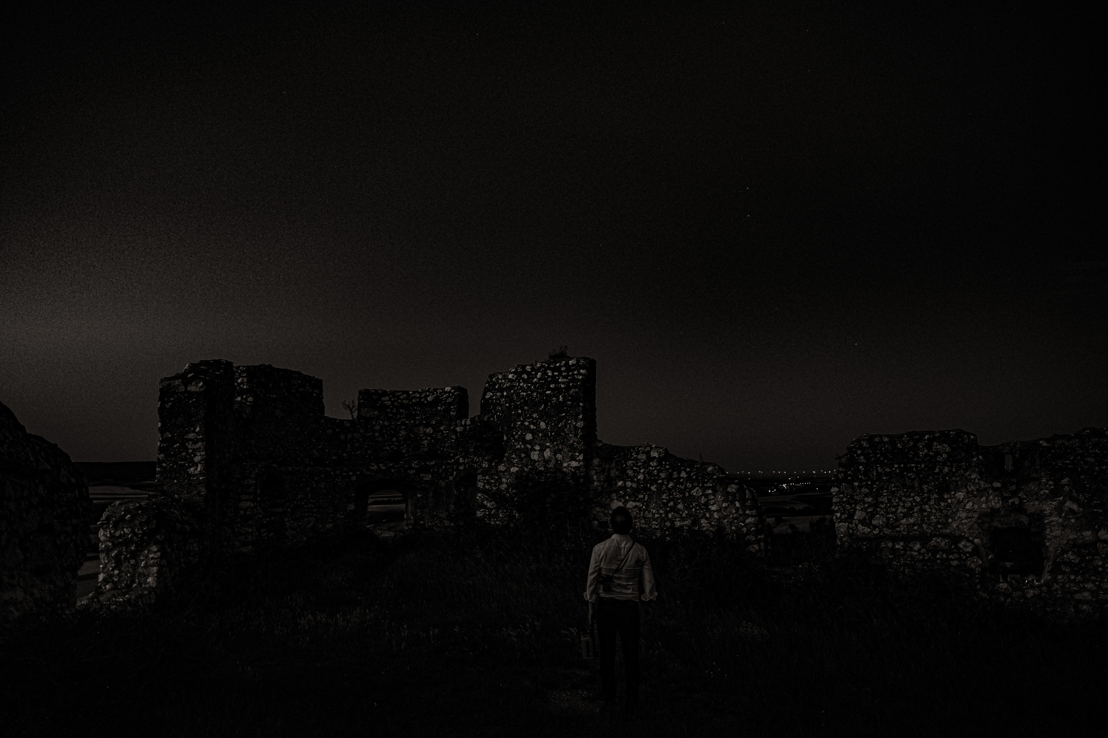 A striking limestone cliff in the Lower Austrian wine district, which is under nature protection, is called the Staatzer cliff or Staatzer mountain. Geographically, the Staatzer cliff belongs to the foothills of the Carpathian Mountains and dominates the only slightly hilly landscape from a distance of about 100 meters. The hill is 332 m high and is located in the municipality of Staatz. The slopes are home to remarkable rock steppes and dry grasslands of regional importance. The Staatz castle ruins are at the top. I hauled a Pradovit slide projector up the steep, stony path. Hundreds of stag beetles were out and I kept bumping into one of them. The sun was slowly setting. I wanted to show the P2000, which used to belong to an Alpine club, a mountainous region. A very small mountain region. The Staatzer cliff. The moon had risen and there was silence at the summit. I couldn't find out if the slide projector was emotionally moving. So I got off the mountain again.